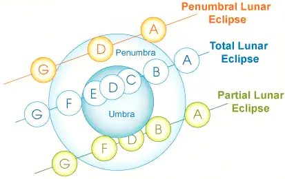 When the Moon enters the Earth's umbra, a Partial Lunar Eclipse and a Penumbral Lunar Eclipse will happen before and after a Total Lunar Eclipse.